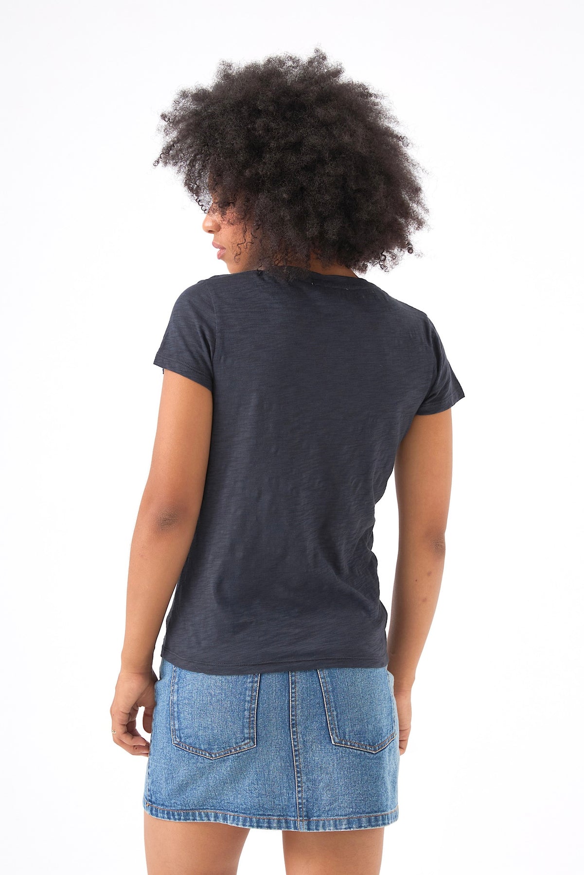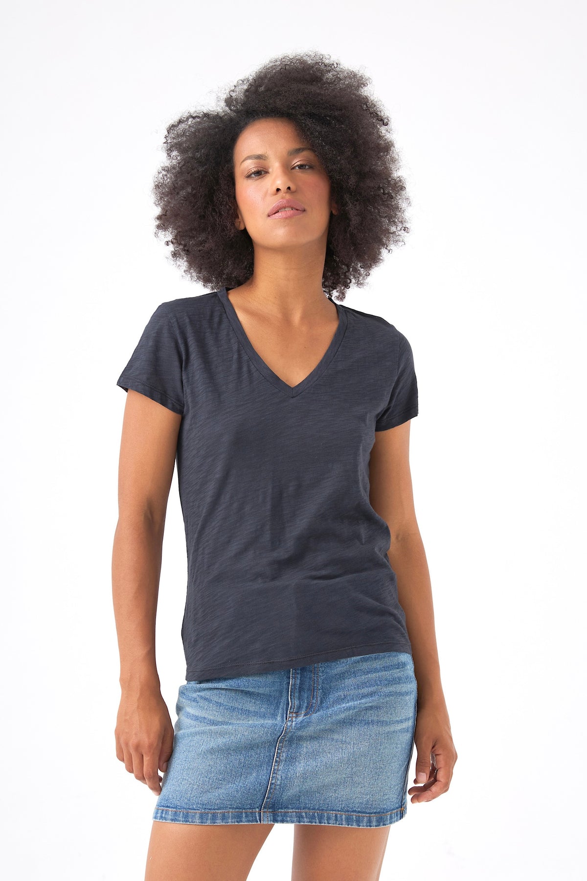 Ce tee-shirt en flanelle de coton impose une silhouette structurée tout en garantissant une sensation de douceur absolue sur la peau. On aime sa coupe ajustée qui souligne les lignes du corps avec précision, tandis que son encolure en V apporte une note de sophistication discrète à ce basique revisité.